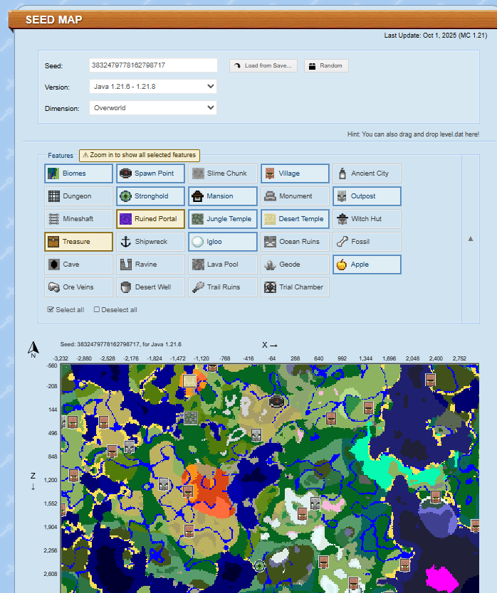 Minecraft генерирует мир по математической формуле. Если ты знаешь сид — ты можешь предсказать, что и где будет. Seed Map делает эту информацию наглядной: вместо формул — карта с иконками.