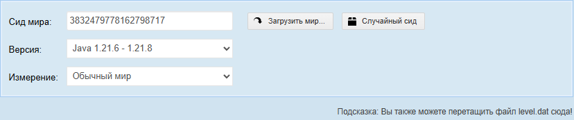 Очень важно! Мир, созданный в 1.16, будет отличаться от 1.21. Укажи ту версию, на которой был **создан** нужный участок.