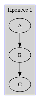Внутри кластера могут быть свои узлы и рёбра. Атрибуты кластера (рамка, фон, подпись) задаются как у обычного графа.
