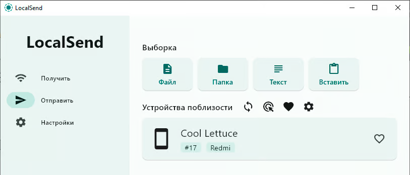После установки LocalSend автоматически находит другие устройства с этой программой в той же сети. Ничего настраивать не нужно — просто открой приложение на обоих устройствах, и они сразу увидят друг друга.